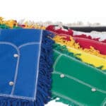 Fabricadas con resistente lona de poliéster que garantiza larga durabilidad, baja absorción y elimina el problema de encogimiento.El pabilo que se utiliza para su fabricación es una mezcla de fibras de algodón y poliéster que resulta en alta resistencia a la abrasión, larga durabilidad y bajo consumo de aceite (también conocido como tratamiento para mops). La terminación en rizo del pabilo (mejor conocido como loop end en Estados Unidos) elimina hasta el 90 % del desprendimiento de pelusa y prolonga su vida útil hasta 5 veces más que la de las fundas para mop cuyo pabilo termina en corte.