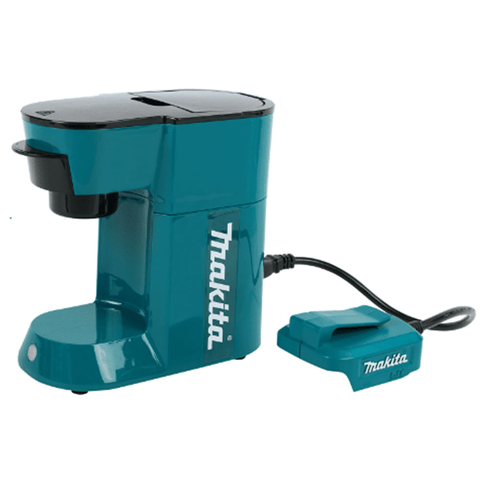 - No se necesitan filtros de papel, solo su café molido favorito, agua, y una batería Makita de 18 V de iones de litio.